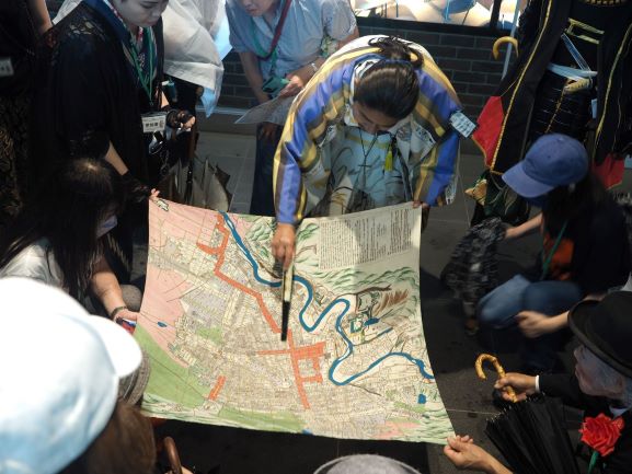 伊達政宗公と支倉常長様のお二人に、芭蕉の辻や晩翠草堂などで歴史や由来について説明を受けながら散策しました。芭蕉の辻や仙臺緑彩館には今昔の様子を示した地図もあり、地名の由来にも触れることができました。