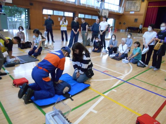 各ブース訓練は、町内会の訓練参加者を4つの班に分け、消火訓練、災害時給水栓取扱訓練、救急救命体験、備蓄物資の確認をローテーションで行いました。