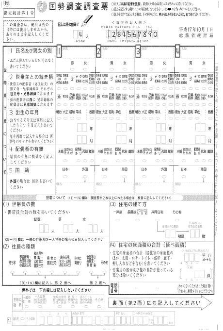 ホーム > 市政情報 > 統計情報せんだい > 国勢調査 > 平成17年国勢調査 > 調査の概要 > 調査票