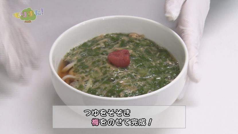 さらにつゆを注ぎ、梅を添えれば「めかぶとなめたけのあったか梅うどん」の完成です!