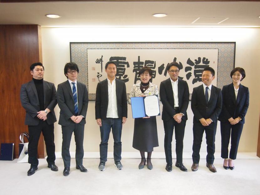 開設に先立ち、ともに仙台市出身である代表取締役の新田氏、取締役CTOの石亀氏が仙台市役所を訪れ、市長に対し立地表明書を提出し、進出概要などを説明しました。