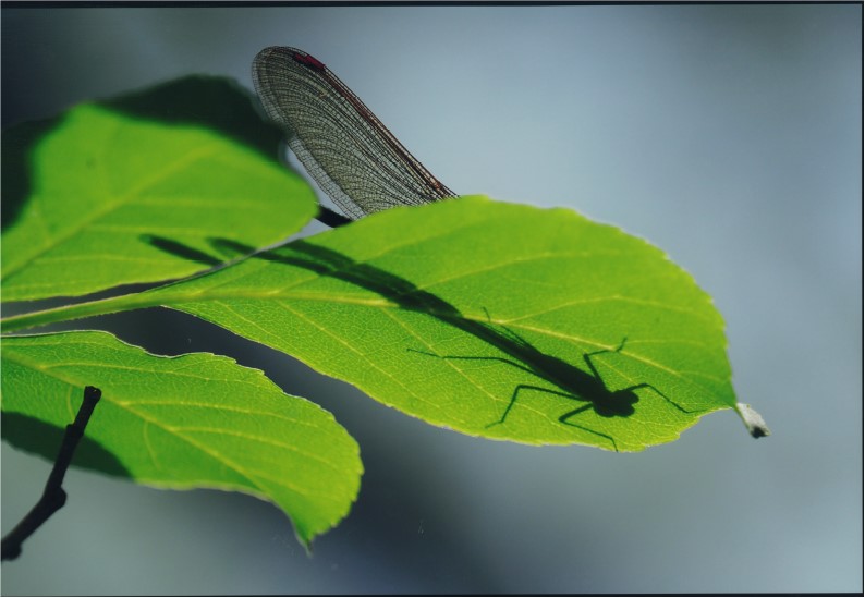 写真は自然豊かな泉ケ岳山麓の「芳の平湿原」に棲息するニホンカワトンボをシルエットで上手に撮影しています。緑葉の上にすがるトンボの羽がとても綺麗でした。すっきりとまとめた構成にしたことにより、素敵な作品となりました。