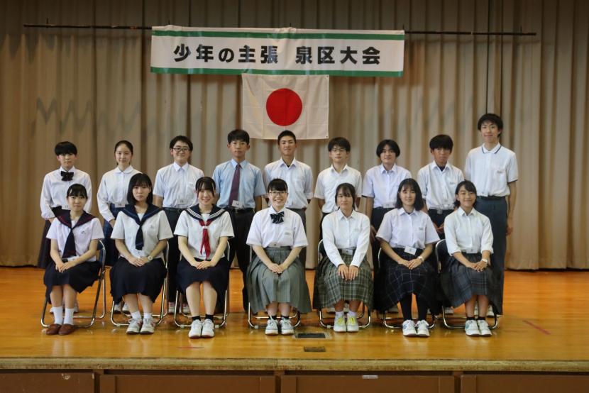 中学生が日頃の思いや将来の夢などを発表する「少年の主張泉区大会」。