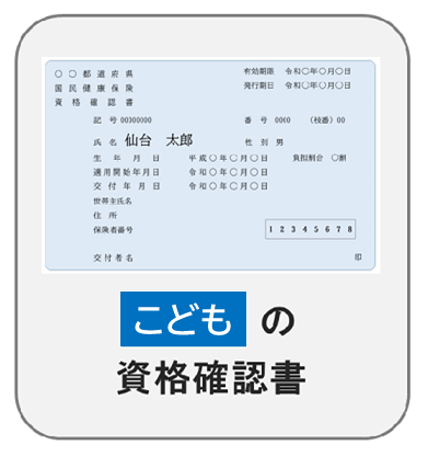 資格登録申請後、仙台市から『子ども医療費助成受給者証』を交付いたします。