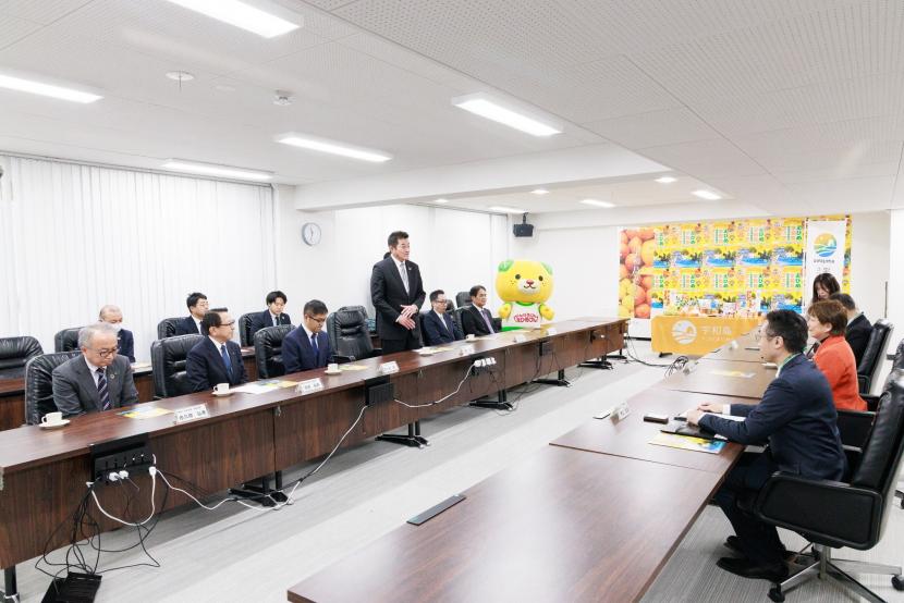 この訪問は、秋保ヴィレッジで開催される「えひめ宇和島歴史姉妹都市フェア2025」(1月30日(木曜)から2月24日(月曜・祝日)まで)にあわせたもので、訪問では愛媛県イメージアップキャラクター「みきゃん」とともにフェアのPRが行われました。