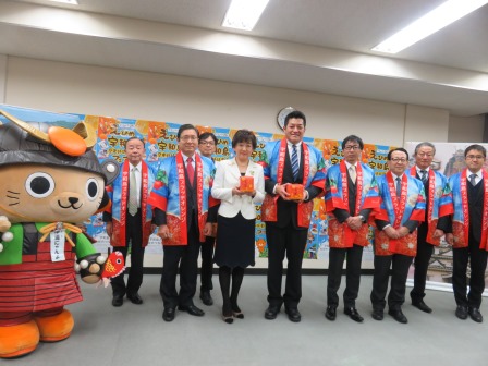 岡原市長の来仙は、宇和島市の物産フェア「えひめ・宇和島歴史姉妹都市フェア」(3月1日(木曜)から26日(月曜)まで)にあわせたものであり、表敬訪問ではフェアや宇和島の特産品などについてトップセールスが行われました。