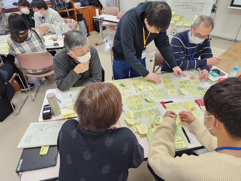「市民のゼロカーボン行動を妨げているのは何か」、「どんな仕組みや仕掛けがあれば市民の行動が変わるか」という2つの視点を意識していただきながら、実施する主体や手段等も含めて、各グループをサポートするグループファシリテーターと一緒に検討・議論を進めていただきました。