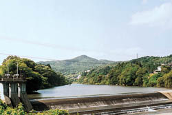 広瀬川「北堰」より、権現森を望む(撮影:高田栄三郎)