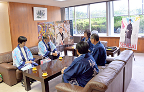 本市の観光姉妹都市である徳島県徳島市の豊井副市長をお迎えしました。昭和45年に観光姉妹都市を提携以来、仙台七夕まつりと阿波おどりの期間中、相互に親善訪問団を送るなど交流を行ってきました。今後もより一層の友好を深めていければと思います。