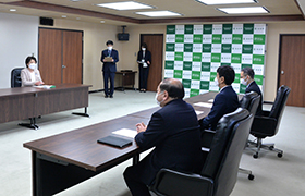 株式会社木下グループの木下直哉代表取締役社長兼グループCEOがお見えになり、新型コロナウイルスPCR検査キット1万セットを寄贈いただきました。感染症対策業務従事者等の健康確認など、さまざまな場面での活用を検討し、感染症対策に役立ててまいります。