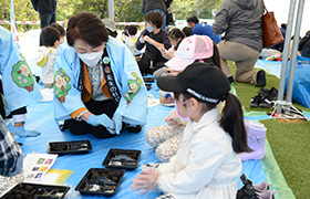 第40回全国都市緑化仙台フェアに向けて、メイン会場の青葉山公園で幼稚園等に通う子どもたちと一緒に、たねダンゴによる花壇づくりを行いました。フェア開催中にネモフィラなどが咲く様子を見に来てほしいと思います。今後も市民の皆さんと一緒にフェアを作り上げていきます。