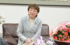 仙台市中央卸売市場花き部運営協議会の皆さまがお見えになり、カーネーションの花束やアレンジメントなどを贈呈していただきました。素晴らしい花をいただき、気持ちも明るくなりました。日頃から花の魅力の発信などを通して市民の生活に潤いを与えてくださっていることに、あらためて感謝いたします。