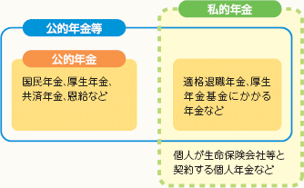 このうち「公的年金」と「私的年金のうち企業が退職者に支給する企業年金」などを合わせたものを「公的年金等」と呼びます。