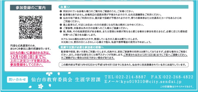 令和6年仙台市 はたちの集い案内状裏面