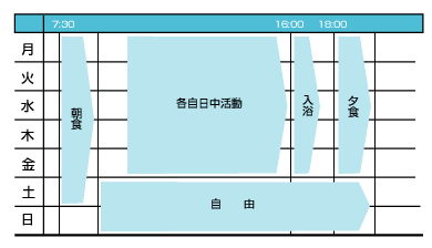 個別の生活スペースで気兼ねなく暮らし、朝・夕の食事の時、楽しく過ごしていただけるよう、本人主体の暮らしの場を提供していきます。