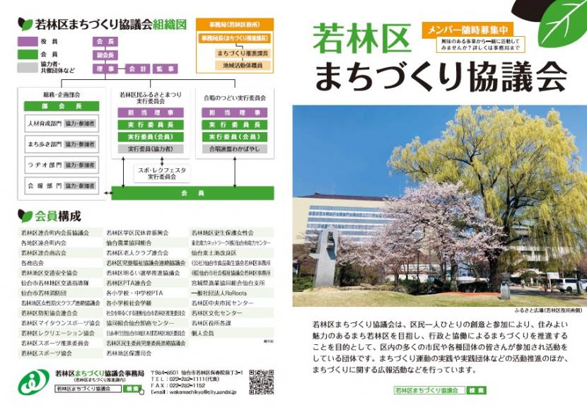 若林区まちづくり協議会のことを広く知ってもらうことを目的に、リーフレットを作成しています。