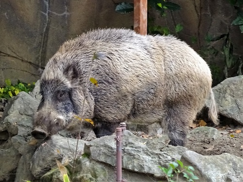 雑食性でミミズや木の実、クズなどの木の根を食べる。鼻先で地面を掘り返して食べ物を探す。足が短いため積雪の多い地方には少ない。 |