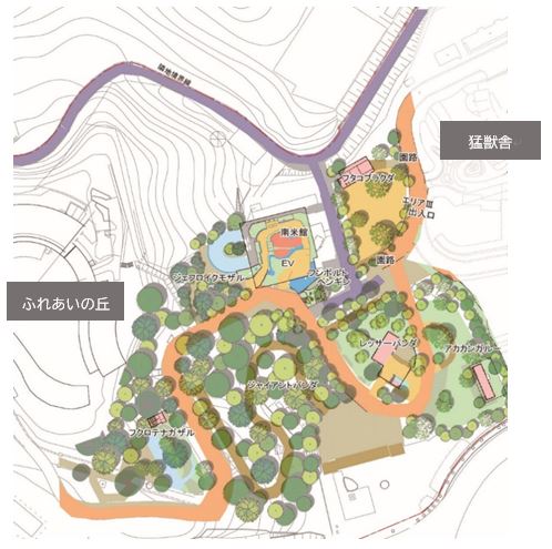 西園(アフリカ園)と東園を繋ぐスロープは園内で最も高低差があるのですが、土地を造成して、いまよりもなだらかにします。
