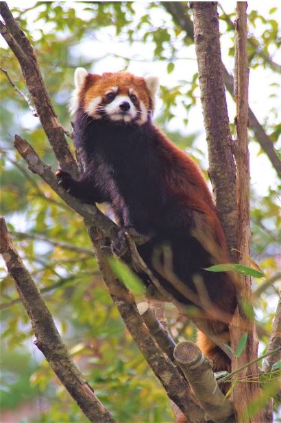ペンギンたちにお別れをして園路を東門方面に向かって進むと、左手にレッサーパンダが見えてきます。