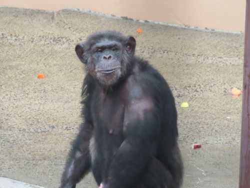 隣の放飼場にいる他のチンパンジーをのぞいたり、