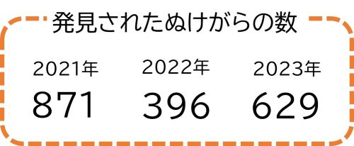 そして、翌年の2023年には、発見数が629個となったことから、参加していただいた方が増えたのかもしれないと思っています。